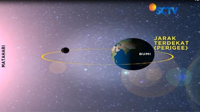 Permukaan bumi yang akan mengalami gerhana matahari total ditunjukkan oleh gambar B. Karena posisi bulan saat terjadi gerhana berada di posisi terdekat dengan bumi Perigee maka bulan akan terlihat lebih besar dari fase-fase purnama biasa sehingga sering disebut dengan Super Moon ujar. Gerhana bulan dan gerhana matahari.